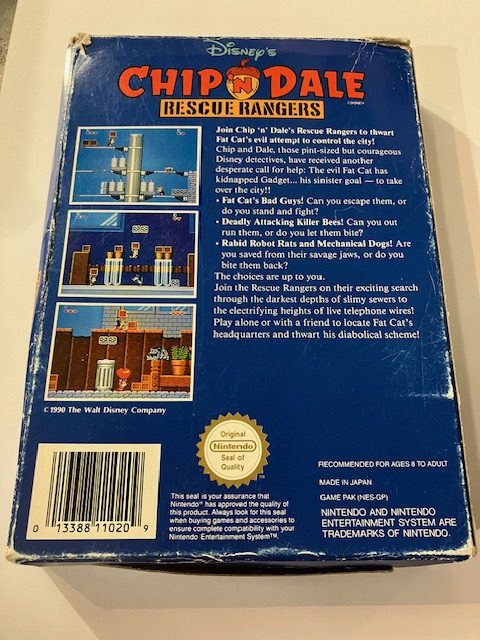 Chip and Dale Rescue Rangers NES. Boxed. Peli, kotelo ja styroksi.