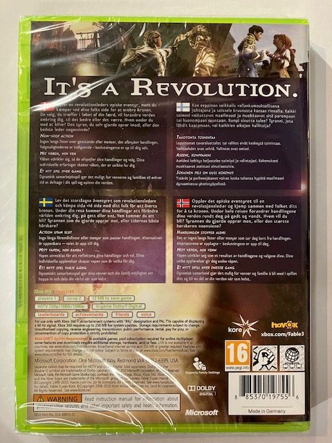 Fable III on uusin osa Xbox 360:n kiitettyyn yksinoikeuspelisarjaan. Vanhat ja uudet fanit pääsevät osallistumaan monipolviseen seikkailuun, jossa valtaistuimen tavoittelu on vain alku uskomattomalle matkalle. Fable II:n tapahtumista on kulunut viisi vuosikymmentä. Albionin kuningaskunta on kokenut teollisen vallankumouksen, mutta sen kohtalo on vaakalaudalla.