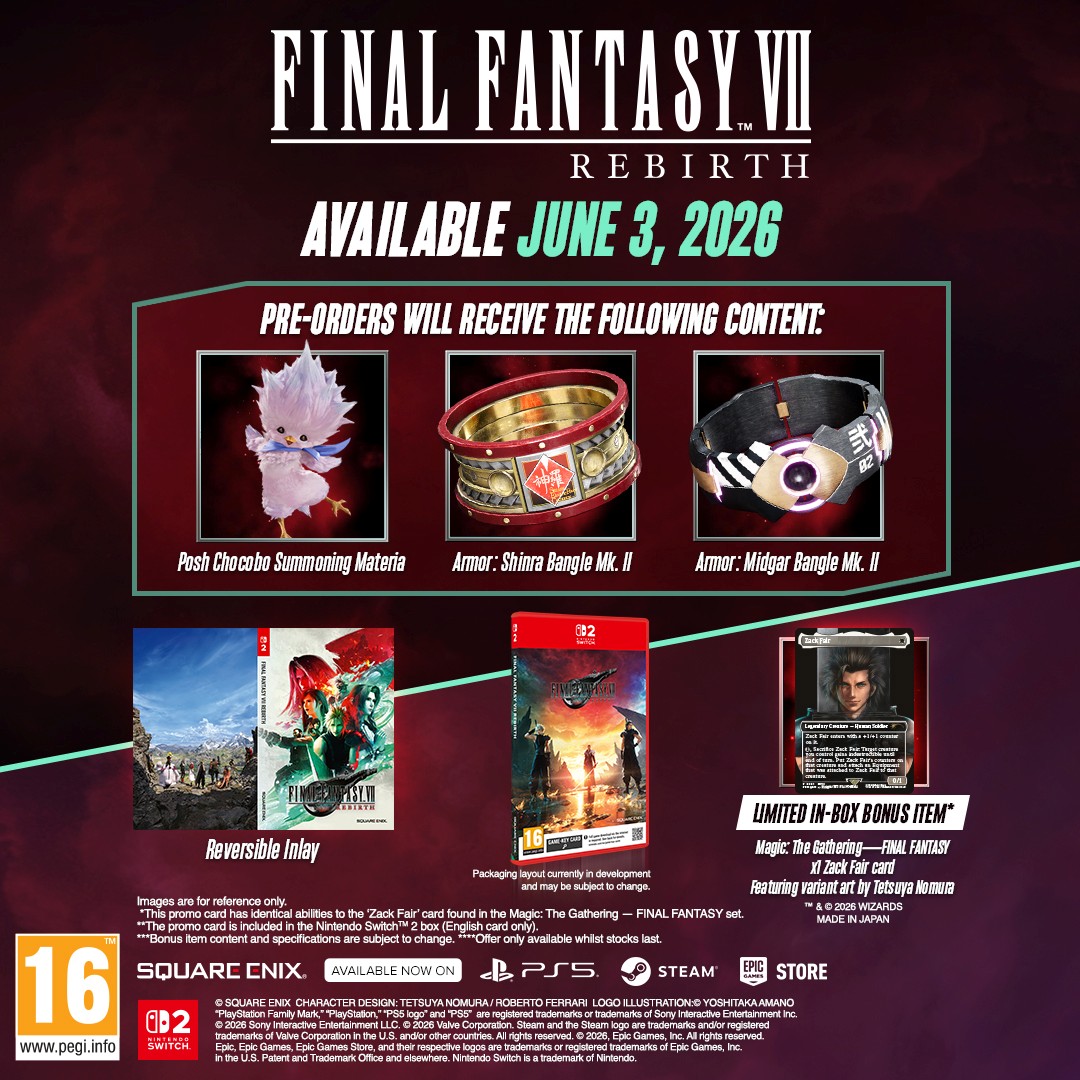 Final Fantasy VII Rebirth on Final Fantasy VII uudistusprojektin toinen osa. Se kertoo uudella tavalla tyylilajia määrittäneen roolipelin tarinan kolmella erillisellä pelillä. Tutut sankarit, Cloud, Barret, Tifa, Aerith ja Red XIII ovat paenneet Midgarin dystooppisesta kaupungista ja jahtaavat nyt Sephirothia, jo kuolleeksi luultua kostonhimon kalvamaa miekkamiestä Cloudin menneisyydestä. Voit odottaa uudentasoista elokuvamaista tarinankerrontaa, nopeatempoista taistelua ja monipuolista paikkojen tutkimista laajassa maailmassa. Tutki laajaa maailmaa ja koe ryhmän jokaisen jäsenen henkilökohtainen matka ja vahvista heidän välisiä siteitään, jotta he voivat toimia yhdessä ja selvitä voimakkaista vihollisista.