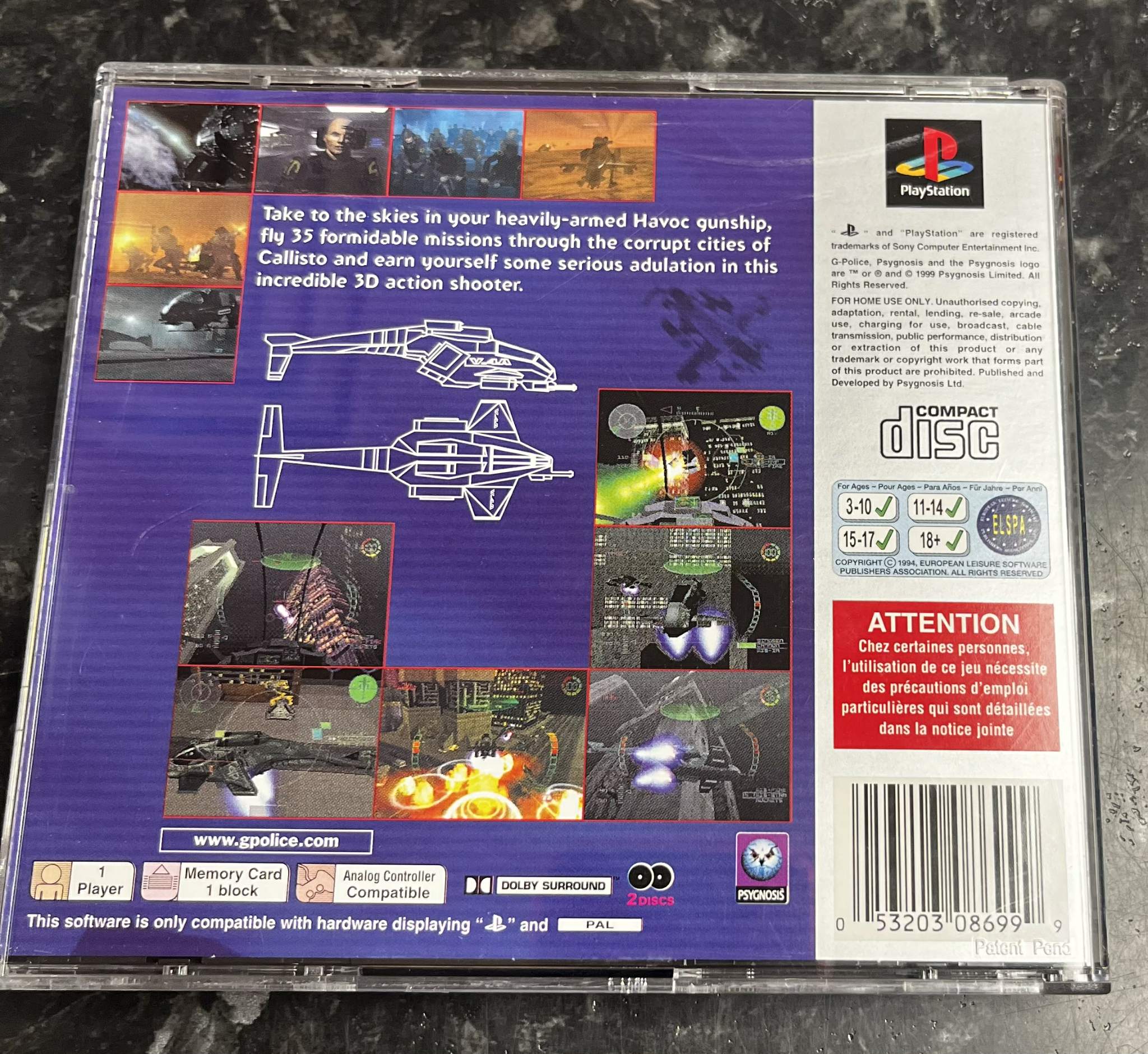 G-Police is a 1997 shooter video game developed and published by Psygnosis for the PlayStation and Microsoft Windows. The game spawned a sequel, G-Police: Weapons of Justice, released in 1999 for the PlayStation. This sequel received similar reviews to those of the original game. In 2007, G-Police was made available for download on the PlayStation Network in Europe.