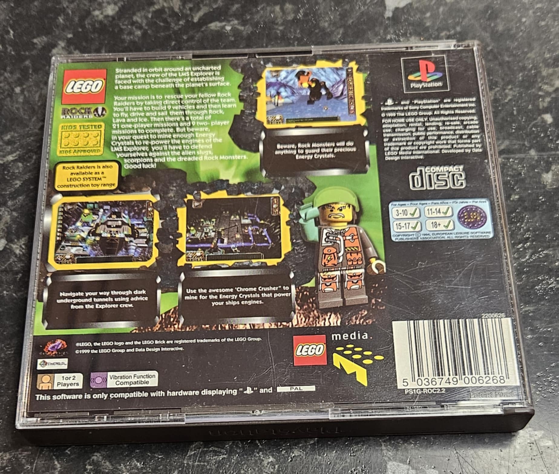 LEGO Rock Raiders (PS1) on seikkailullinen toimintapeli, jossa johdat Rock Raiders -tiimiä tutkimaan salaperäisiä luolastoja ja keräämään arvokkaita energiakristalleja. Kaivaudu syvemmälle, rakenna tarvittavia ajoneuvoja ja vältä vaaroja, kuten sortumia ja vihamielisiä olentoja. Pelin yhdistelmä toimintaa, tutkimista ja LEGO-huumoria tekee siitä viihdyttävän kokemuksen kaikenikäisille pelaajille.