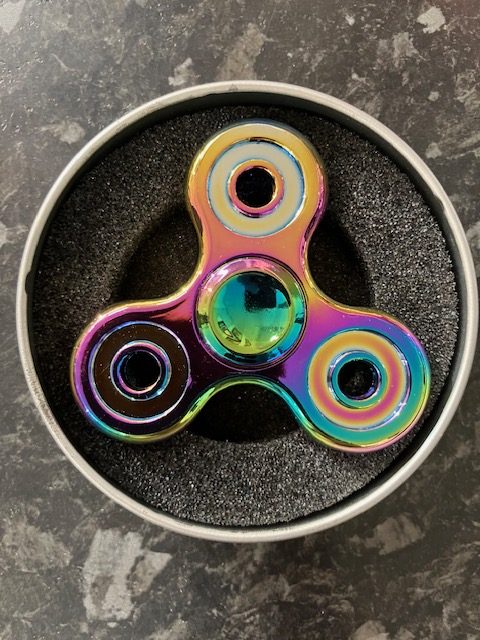 Laadukas metallinen spinneri ympyrä kuvioilla. Pyörii hienosti.