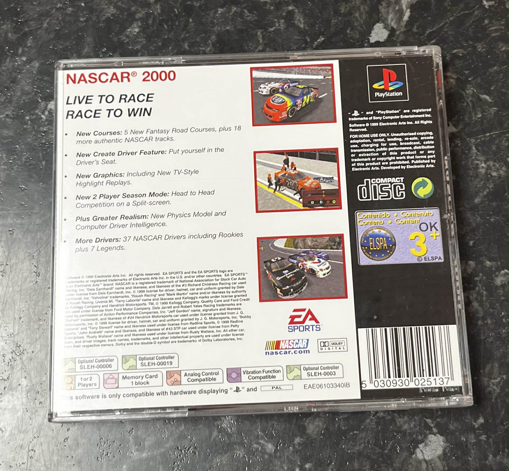 NASCAR 2000 (PS1) tarjoaa nopeaa ja intensiivistä stock car -kilpailua legendaarisilla radoilla. Kilpaile huippukuljettajia vastaan, hallitse tarkkaa ohjausta kaarteissa ja tavoittele voittoa koko kauden ajan. Pelin nopeatempoinen ajotuntuma ja autenttinen NASCAR-fiilis tekevät siitä erinomaisen valinnan kilpa-ajopelien ystäville.