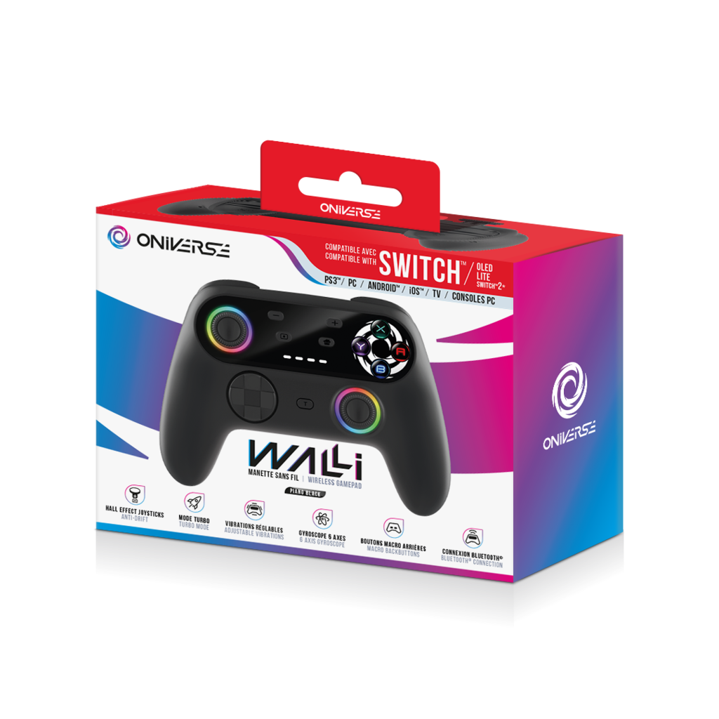 Bluetooth-ohjain on varustettu Hall Effect -ohjaussauvoilla, jotka parantavat tarkkuutta pelatessa. Kaksi ohjelmoitavaa takapainiketta, gyroskooppi ja Turbo-tila auttavat sinua saamaan kaiken irti peleistäsi. Kahdeksan metrin kantama mahdollistaa vapaan pelaamisen missä tahansa. Ohjaimen muotoilu ja erilaiset LED-tilat tekevät siitä jokaisen pelaajan välttämättömän lisävarusteen!