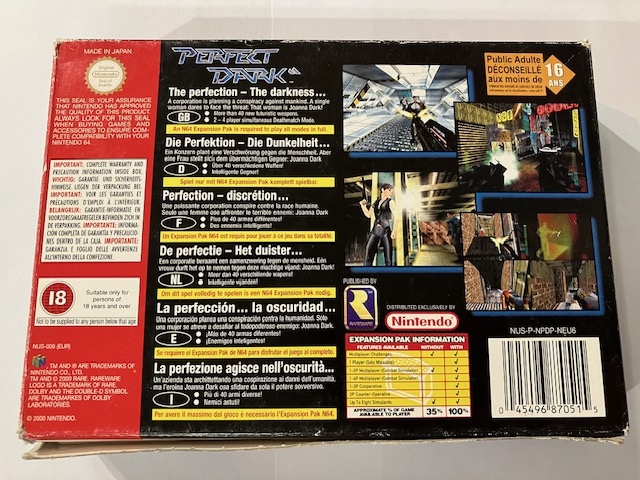 PAL Nintendo 64, ”CIB”, sisältää pelin + kotelon + ohjeet, yksi pikku läppä kotelosta puuttuu.
