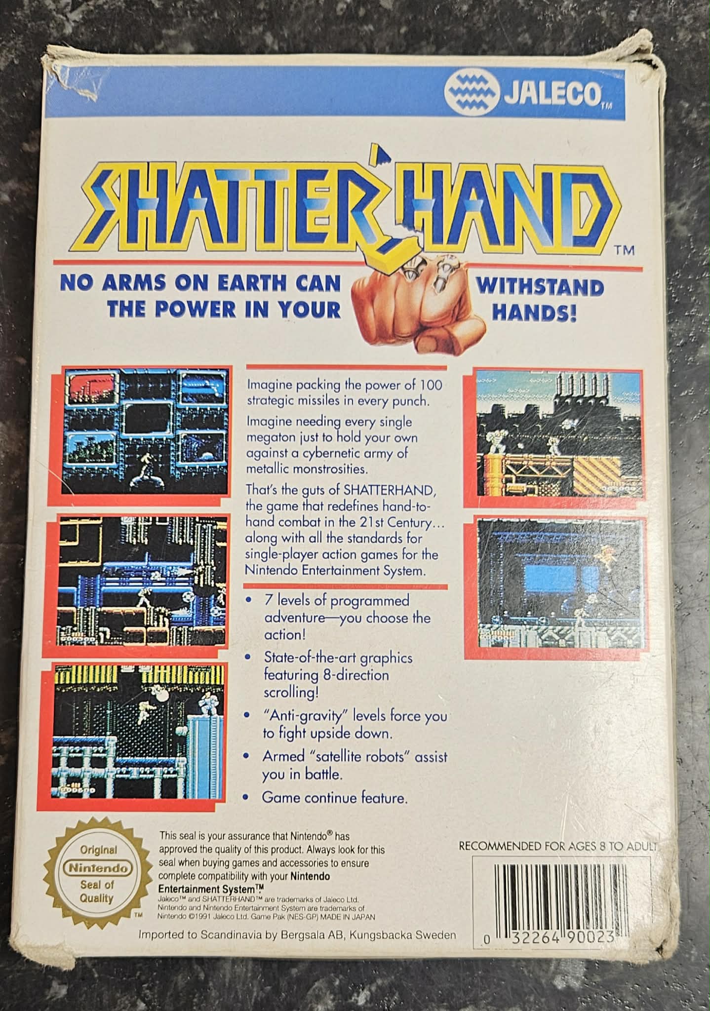 Shatterhand (NES, 1991) on intensiivinen ja näyttävä toimintatasohyppely, jonka kehitti Natsume. Peli tunnetaan laadukkaasta toteutuksestaan ja on nykyään yksi NES-kirjaston halutuimmista harvinaisuuksista.