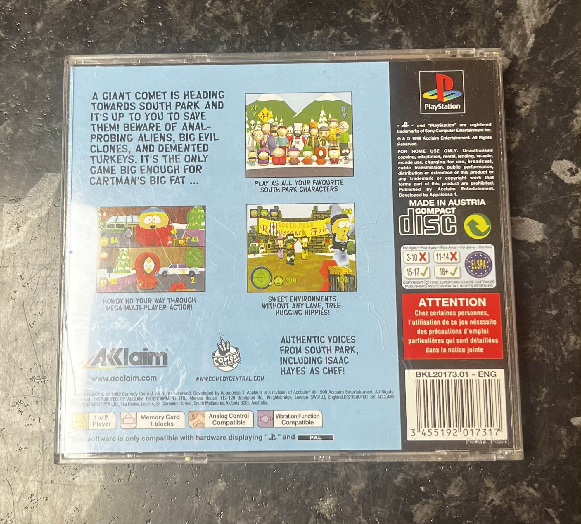 South Park käytetty (PS1) Black Label CIB