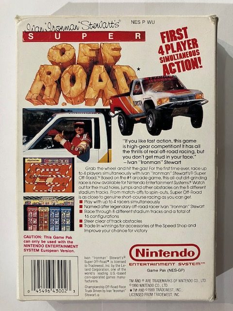 Super Off Road NES. Kasetti NES-WU-FRA, ohjeet NES-WU-SCN-1. Ohjeissa suomi ja ruotsi.