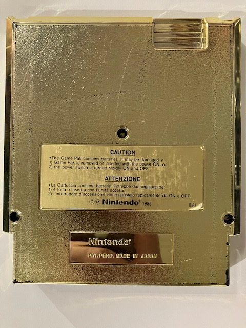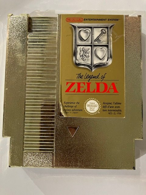 The Legend of Zelda NES. Komeassa kiiltävässä kultaisessa kasetissa.