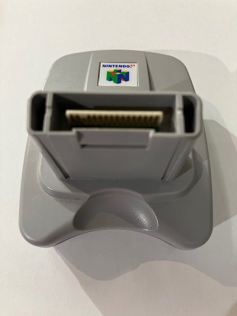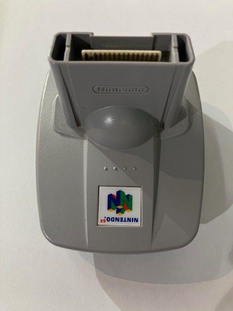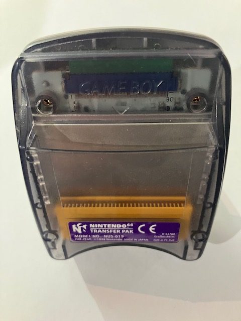 Alkuperäinen Nintendo 64 Transfer Pak. Tällä voit siirtää dataa Game Boy ja Game Boy Color peleistä Nintendo 64 peleihin.